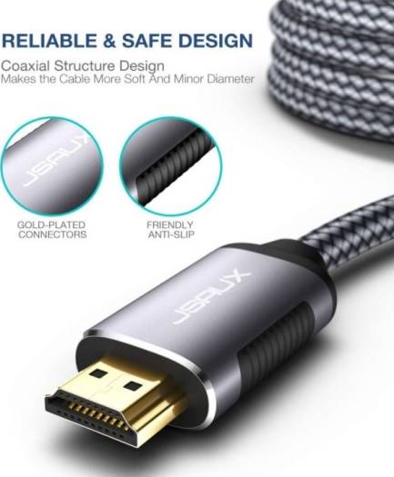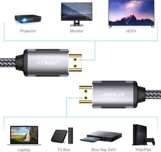 4K HDMI Cable 6.6FT, JSAUX HDMI 2.0 High Speed Gold Plated Connectors with Braided Cord Compatible With Ethernet/Audio Return Channel, Video @60Hz UHD 2160p, HD 1080p, 3D Xbox PlayStation PS3/4 (Grey)