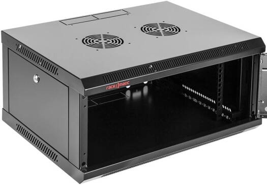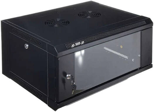 4U 600 X 450 Wall Mount Rack Single Section Cabinet With Fan-Server Room Organization, Dimensions 600mm (W) x 450mm (D) x 350mm (H), Organized Storage, Black
