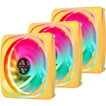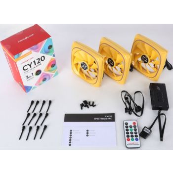 Abkon Core CY120Y ARGB Spectrum Sync (3 in 1) Pack of 3 ARGB 120 mm LED Fans with control Box and Remote Control – Yellow | CY120Y