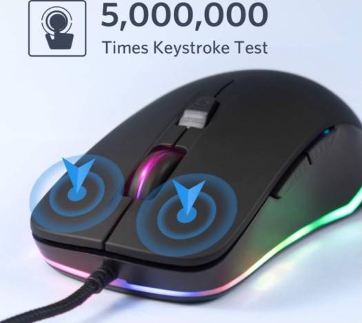ABKONCORE AM8 Gaming Mouse with 4Dpi Levels (800, 1600, 2400, 3200), Programmable Buttons, Wired Ergonomic USB Computer Mouse | MUS-031