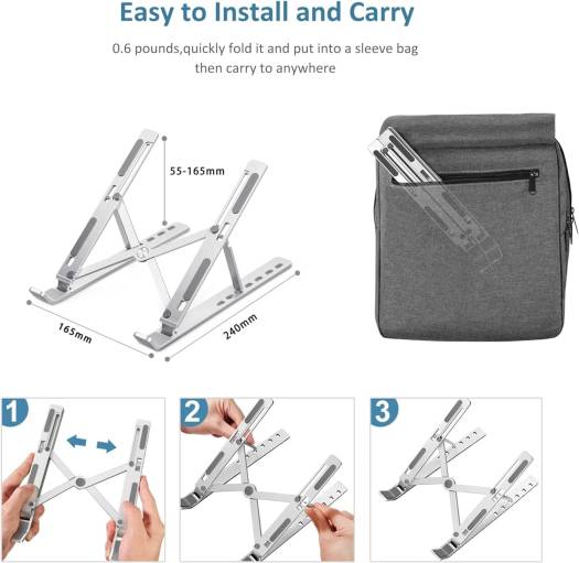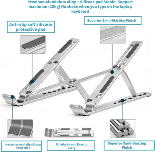 Adjustable Laptop Stand, Portable Aluminium Laptop Riser Laptop Holder for Desk, Foldable Ventilated Cooling Computer Support Stand for Apple MacBook Pro/Air, HP, Sony, Dell, More 10-15.6