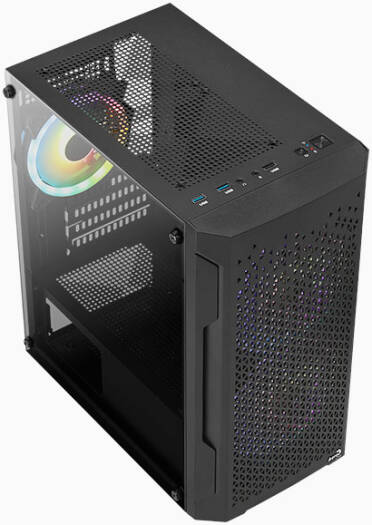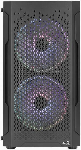 Aerocool Trinity-Mini Tower RGB Case, Up to 240mm Radiator Support, Includes 140mm x 2 & 120mm x 1 RGB Fans, USB 3.0 x 2, USB 2.0 x 1, Tempered Glass Side Panel, Black | Mini-G-BK-V3