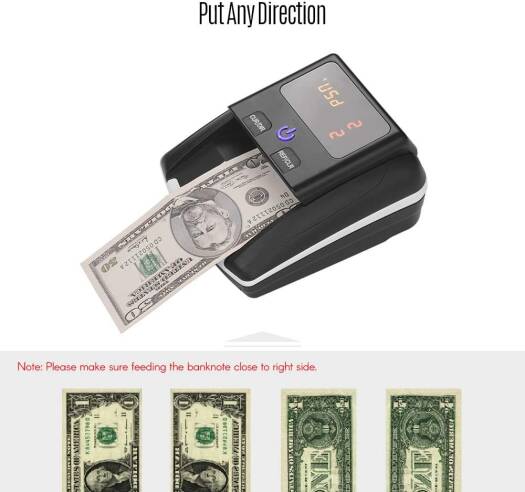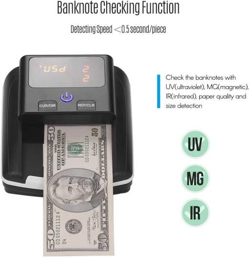 Aibecy Portable Small Banknote Bill Detector Denomination Value Counter UV/MG/IR Detection with Battery Counterfeit Fake Money Currency Cash Checker Tester Machine for USD EURO