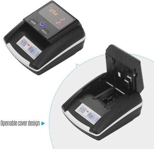 MG(ma-gnetic), IR(infrared), paper quality and size detection, powerful to help you detect forged and counterfeit banknotes. Detecting Speed 0.5 second/piece. 2 Kinds of Power Supply & USB Port : The money detector can be powered by 500mAh rechargeable lithium battery, without powered adapter, very convenient to use. Comes with a power adapter, it can also be connected with power adapter to use. Software can be updated through USB port. Sleep Mode : The detector will enter sleep mode after 3 minutes of idling to save power, it can be waken up by touching any key or feeding a banknote. If the machine is idle for more than 5 minutes, the machine will power off automatically. Compact & Portable : Small and lightweight, made of high quality ABS material, easy to carry and store. Widely used in shops, grocery stores, restaurants, hotel, street peddler, small business, etc. Specifications: Color: Black Material: ABS Power Supply: AC 220V 50/60Hz or DC 12V/1.0A Battery: Rechargeable Lithium Battery 500mAh 11.1V Power Consumption: 10W Detecting Speed: 0.5 seconds/piece Operating Temperature: 0 -40 Storage Temperature: -20 -65 Item Size: 15.5 * 13.3 * 8.2cm / 6.1 * 5.2 * 3.2in Item Weight: 552g / 19.5oz Package Size: 18.7 * 16.5 * 13.6cm / 7.4 * 6.5 * 5.4in Package Weight: 804g / 28.4oz Notes: 1.Please make sure feeding the banknote close to right side. 2.Please tear off the film on the screen to get a better viewing experience. 3.The lithium battery