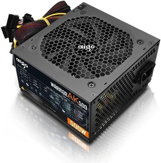Aigo Warrior AK500 Max 500W ATX Power Supply, Built-in PFC, Intelligent Temperature Control, Silent 12cm Hydraulic Bearing Fan, ATX 24pin 12V, 4 SATA Interface, Black | AK500