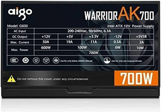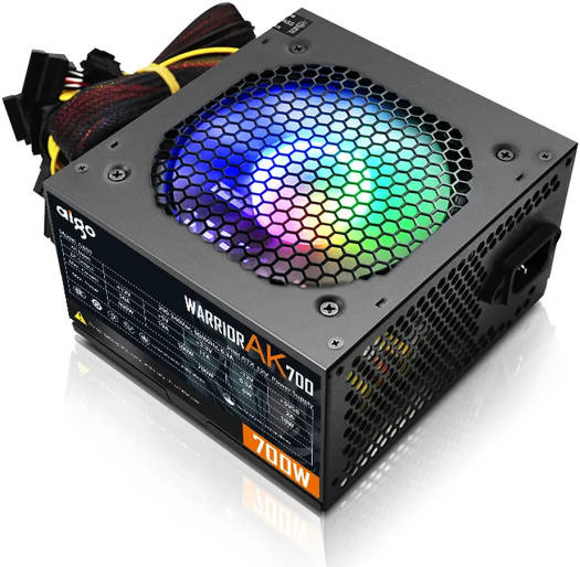 Aigo Warrior AK700 Max Power Supply, 700W Power, 120mm Hydraulic Bearing Silent RGB Fan, Built-in PFC, 220V AT, Multi-function Protection, Support Intel & AMD, Black | AK700