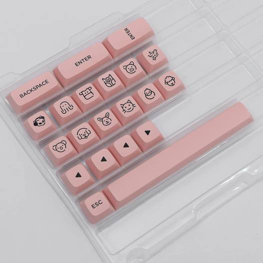 ASA-Low profile is the lowered version of the standard Akko SA Profile. Note: ASA-Low profile will cause interference with TTC Demon/Princess (switches with a backlit condenser). Compatible with a wide range of layout including but not limited to 60%, 64-key, 65%, TKL, 75%, 96%, 1800 and full-size. 7u spacebar for HHKB layout and extra B-key for Alice layout. AKKO Black & Pink Color Scheme – Black & Pink continues! With this keycaps set, we have interpreted our way of simplism while also have a twist to it. Designed in three simple colors, black, dark grey and searing pink, the low key keycaps is telling her story in a implicit way. Take a close look, the large pink character matches so well with the dark tone, just as sweetness meets darkness ASA Low-Profile Keycaps Full Set – Like other low-profile keycaps, the ASA low-profile keycaps have the same height around 8.96mm. It is no need to worry about different-height problem