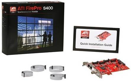 AMD FirePro S400 Synchronization Module The single-slot form factor FirePro S400 Synchronization Module from AMD is able to sync between one and four compatible FirePro Graphics cards using genlock or Framelock. Genlock is common in broadcast video applications, and can be generated internally or come from an external “house” source via a BNC sync input. Framelook, meanwhile, is specific to computer graphics, combining output lock (synchronized display output) and 3D swap lock (simultaneous 3D buffer swapping) to ensure multiple GPUs in the connected systems present their outputs in lock-step. This is useful if images from multiple display outputs are being aggregated into one image. The card features dual RJ-45 ports so that daisy-chaining can be used to extend synchronization across multiple computers.