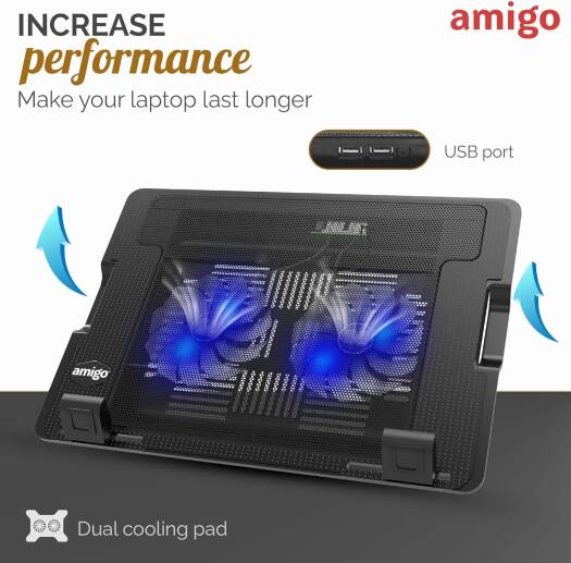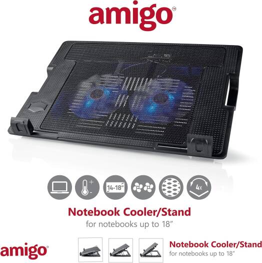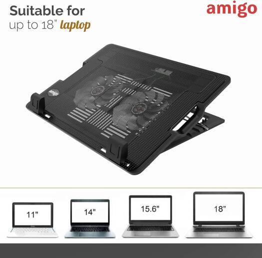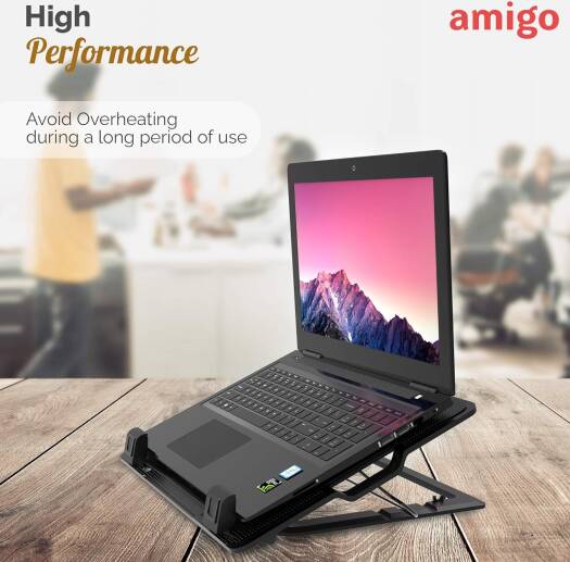 Amigo Nedis Portable Cooler Notebook Stand Laptop Riser with Adjustable Height Angle Apt for Laptop Up to 18" Universal Compatibility (Black) Ver 2