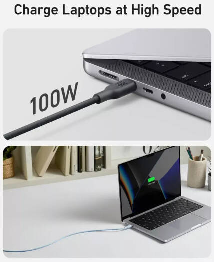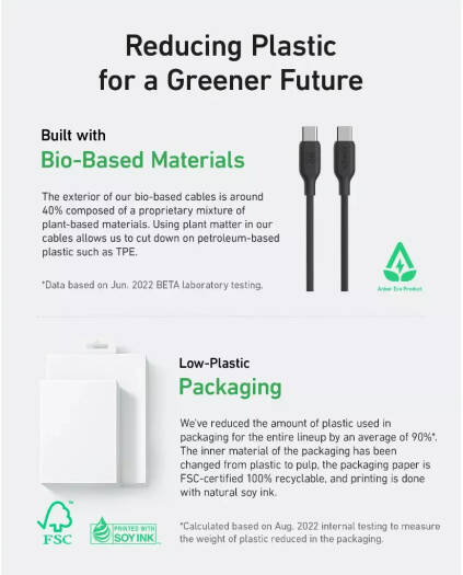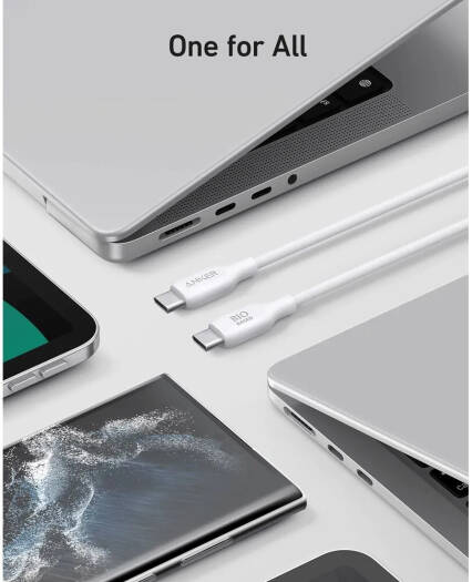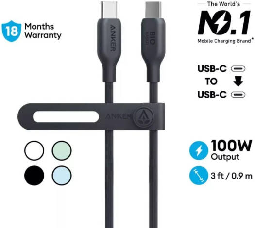 Anker USB-C To USB-C Cable The Anker USB-C cable features a bio-based design, crafted from sustainable materials like corn and sugar cane, making it both eco-friendly and durable with an impressive 25,000-bend lifespan to withstand daily use. This cable supports fast charging with a power output of up to 100W when paired with a compatible 100W wall charger (note that it does not support media display). With USB-IF safety standards met, it ensures flawless compatibility with virtually any USB-C device, including phones, tablets, and laptops, providing a reliable charging solution for all your needs.