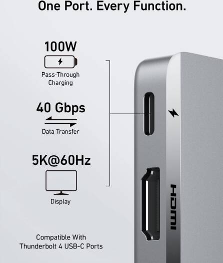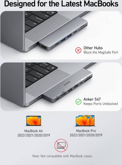 Anker 547 USB-C Hub 7-in-2, For MacBook, Up To 100W, 40 Gb/s Speed, MacBook’s 2 USB-C Ports Into 1 Multi-function USB-C, 1 USB-C Data, 2 USB-A, 1 HDMI, 1 SD card slot, 1 MicroSD Card Slot | A8354HA1
