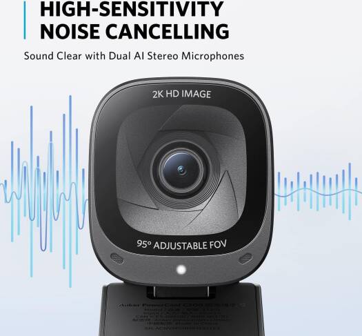 Anker PowerConf C200 2K Mac Webcam, Webcam for Laptop, Computer Camera, with AI-Noise Canceling Microphones, Stereo Mics, Adjustable Field of View, Low-Light Correction, Built-in Privacy Cover | A3369