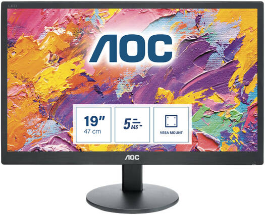 AOC E970SWHEN 19″ HD TN Flat Monitor, 5ms (GtG) Response Time, 1366 768 @ 60Hz Native Resolution, 16.7 Million Colors, 16 9 Aspect RatioVESA 100 x 100 Wall Mount, D-Sub / HDMI, Black | E970SWHEN