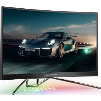 AOC PD27 Studio F.A. Porsche Design Agon 27″ Curved Gaming Monitor, 1000R QHD 2560×1440, 240Hz, 0.5ms MPRT, Display HDR 400, Light FX, Quick Switch Keypad, Height-Adjust, VA, Black | PD27