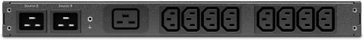 APC NetShelter Rack Automatic Transfer Switch, 1U Rachmount, 16A Rated Current, 230V Output Voltage, 2 C20 Inlet & 8 C13, 1 C19 OUT, 50/60Hz Network Frequency, Black | AP4423A