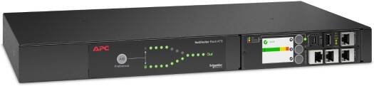AP4423A APC NetShelter Rack Automatic Transfer Switch (ATS) AP4423A is the Fifth-Generation range of high availability switches offering greater control of your IT equipment from Cloud to Edge. With Industry leading reliability, agility, and manageability the APC NetShelter Rack ATS provides redundant power to single-corded equipment loads in the IT rack. AP4423A is single-phase 1U Rack ATS with 16A rated current, 230V rated voltage and 3700VA load capacity. It comes with 2 IEC C20 inlet and 8 IEC C13, 1 IEC C19 outlet sockets. This has been upgraded with APC NMC3 and various technical advancements for network port sharing, environmental monitoring and enhanced security. Users can access and configure Rack ATS through secure Web UI, SNMP, CLI and are fully compatible with EcoStruxure IT. Specification</