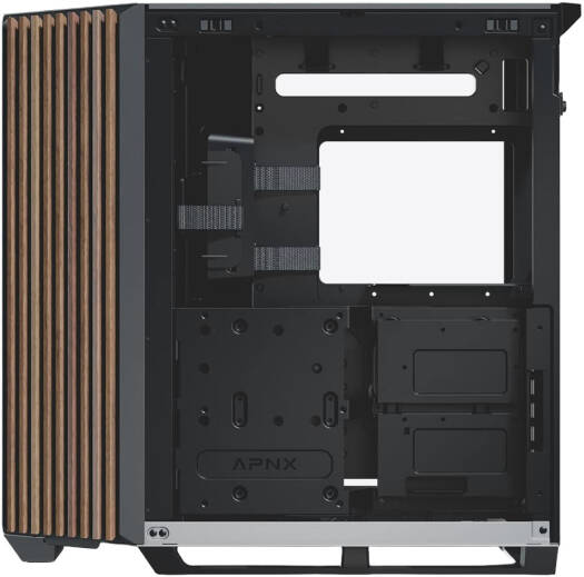 APNX V1 V1-W-BW-v1 ATX Mid Tower Glass Edition Computer Case, Up To 360mm Radiators, x10 Fan Slot, SGCC Body Material, Wood Front Panel, 0.8mm Steel Thickness, Black & White Wood | APCM-VI01103.M1