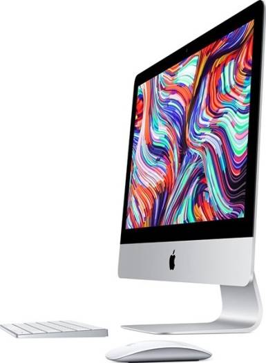 Apple weds high-res 4K visuals into its sleek 21.5″ iMac with Retina 4K Display . In addition to its 4096 x 2304 screen resolution, its display offers 1 billion colors at 500 nits of brightness. The Retina 4K display also features the wider P3 color gamut, which provides a larger color space by utilizing red-green phosphor LEDs that uniformly represent red, green, and blue. And with more available colors, images will appear more vivid and reveal greater detail, with more balance and precision. The iMac’s processing power has been upgraded with an 8th Gen 3.0 GHz Intel Core i5 6-Core processor as well as 8GB of DDR4 RAM. Graphics are powered by a dedicated AMD Radeon Pro 560X graphics card, and for storage, there it’s equipped with a 256GB SSD. Outfitted with Wi-Fi 5 (802.11ac) and a Gigabit Ethernet jack, this iMac can connect to both wireless and wired networks. Other integrated features include Bluetooth 4.2, an SDXC card slot, two 40 Gb/s Thunderbolt 3 ports, four 10 Gb/s USB 3.2 Gen 2 Type-A ports, and a FaceTime HD camera. It also has a Kensington lock slot for added security.