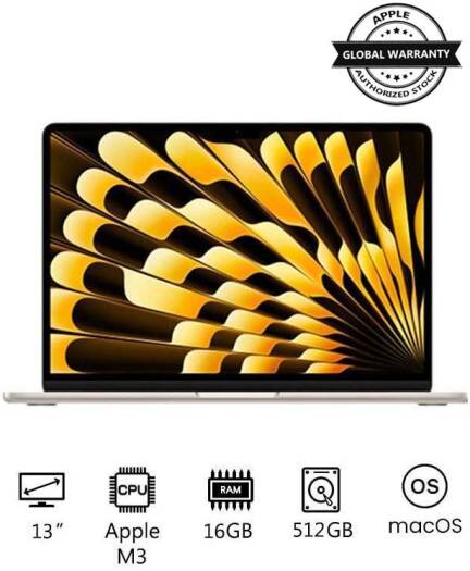 Apple MacBook Air 2024 Laptop, 13” Liquid Retina Display, M3 Chip, 10-core GPU, 16GB RAM, 512GB SSD, Touch ID, Backlit Magic Keyboard ENG, International Version, Starlight | MXCU3