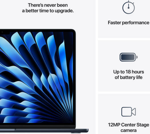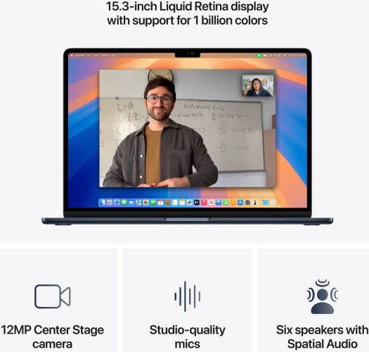 Apple MacBook Air Laptop, 15.3″ Liquid Retina Display, Apple M4 Chip with 10-core CPU, 10-core GPU, 16-core Neural Engine, 16GB RAM, 256GB SSD, English Keyboard, Midnight | MW1L3LL/A
