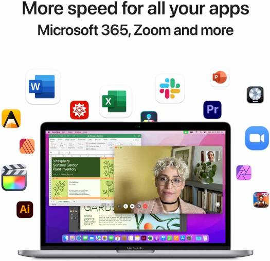 The M2 chip begins the next generation of Apple silicon, with even more of the speed and power efficiency introduced by M1. So you can rip through workflows with a more powerful 8-core CPU. Create stunning graphics with a lightning‑fast 10‑core GPU. Work with more streams of 4K and 8K ProRes video with the high-performance media engine. Performs well with others. macOS and M2 work together to bring more speed and responsiveness to all your go‑to apps — including Microsoft 365 and your favorite iOS apps. Over 10,000 apps and plug‑ins are already optimized for Apple silicon. And Rosetta 2 seamlessly translates apps designed for Intel processors for use on your MacBook Pro. A portable editing bay. The high-performance media engine on M2 supports ProRes encode and decode. So you can play and edit up to 11 streams of 4K ProRes video and up to 2 streams of 8K ProRes video — including 4K ProRes video shot on iPhone 13 Pro.12 And convert projects to ProRes up to 3x faster than before. SKU: SKU-9A2098A3 Category: Laptops Brand: Apple