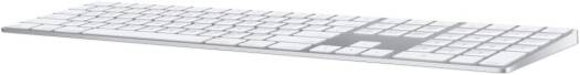 Magic Keyboard with Numeric Keypad features an extended layout, with document navigation controls for quick scrolling and full-size arrow keys for gaming. A scissor mechanism beneath each key allows for increased stability, while optimized key travel and a low profile provide a comfortable and precise typing experience. The numeric keypad is also great for spreadsheets and finance applications. And the built-in, rechargeable battery is incredibly long-lasting, powering your keyboard for about a month or more between charges.