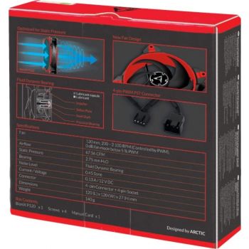 Arctic Bionix P120 Fan, 120mm Fan Size, 200 – 2100 RPM, Fluid Dynamic Bearing, 67.56 CFM, Red | ACFAN00115A