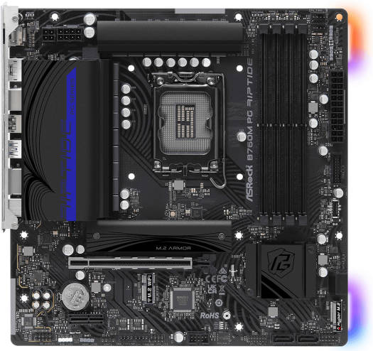 ASRock B760M PG Riptide LGA1700 Micro ATX Motherboard, Intel B760, 4x DDR5 DIMM, 192GB Max, 2.5 GB LAN, 1 x PCIe 4.0 x16, 1x M.2 (Key E) 2230 Wi-Fi/BT, 1xHDMI/DP, USB 3.2-C/A | 90-MXBL60-A0UAYZ