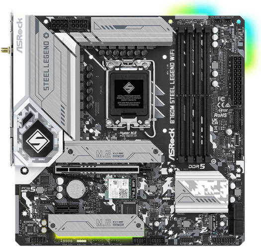 ASRock B760M Steel Legend WiFi Motherboard, Micro ATX Form Factor, LGA1700 Socket, Intel B760 Chipset, 4x DDR5 DIMM Slots, Up to 192GB Max Memory Support, Wi-Fi 6E, Bluetooth 5.3 | 90-MXBL70-A0UAYZ