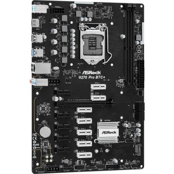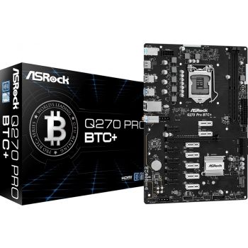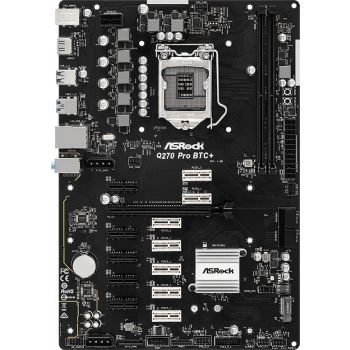 ASRock Q270 Pro BTC+ ATX Motherboard, Socket 1151, Q270 Chipset, Supports DDR4, Intel Gigabit LAN, PCIe 3.0 x16, 4 SATA3 / M.2, USB 3.2 Gen1, HDMI | 90-MXBHM0-A0UAYZ