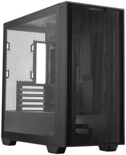ASUS A21 micro-ATX PC Case, Tempered Glass Side & Mesh Front, up to 360mm Radiators Fits Up to 5x 140mm Fans, Clean Cable Mgt, 1 x 2.5″ Bay 2 x 2.5″/3.5″, 2x USB 3.2, Black | 90DC00H0-B09010
