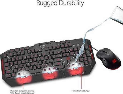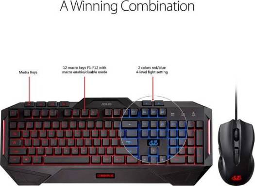 Cerberus Keyboard and Mouse Combo LED backlit USB gaming keyboard with splash-proof design and ambidextrous optical gaming mouse with four-stage DPI switch and convenient LED indicator Full SECC metal plate – Rugged durability Splash-proof design with drain hole – Protects against spilled liquids 12 macro keys – Tactical flexibility Fully rubberized feet – Enhanced friction for strong movements Mouse Agile DPI control – Four customizable DPI levels with an LED color indicator Stylish ambidextrous design – Designed for both right- and left-handed gamers Improved rubber side grips – Reduces sweating and slipping Full SECC metal plate Forged from a full SECC metal plate, Cerberus Gaming Keyboard has a rugged, durable design that stands up to the rigors of continuous, intense gaming.