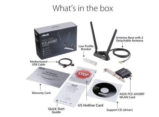 - : The Latest WPA3 Network Security ASUS PCE-AX58BT comes with the latest WPA3 Wi-Fi security standard, providing your PC with an extra layer of protection against external attacks to give you added peace of mind.