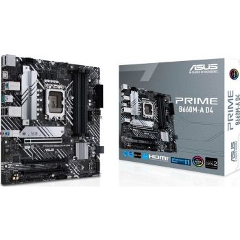 Asus Prime B660M-A D4 MATX Motherboard, LGA 1700 Socket, PCIe 4.0, M.2 slots, DDR4 Support, Intel 1Gb Ethernet, DP, HDMI, USB 3.2 Gen 2, SATA 6Gb/s, Aura Sync | 90MB19K0-M1EAY0