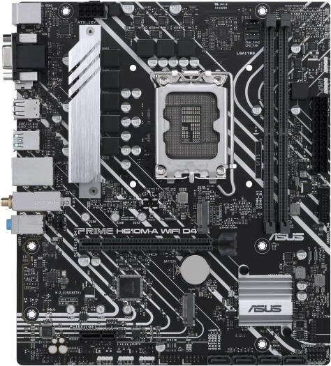 Prime H610M-A WIFI D4 Intel® H610 (LGA 1700) mic-ATX motherboard with DDR4, PCIe 4.0, dual M.2 slots, Intel® 1 Gb Ethernet, WIFI 5, DisplayPort, HDMI®, D-Sub, USB 3.2 Gen 2 ports, SATA 6 Gbps, Addressable Gen 2 headers, and Arua Sync Specifications CPU Intel® Socket LGA1700 for Intel® Core™ 14th, 13th, 12th Gen, Pentium® Gold, and Celeron® Processors Chipset Intel® H610 Chipset