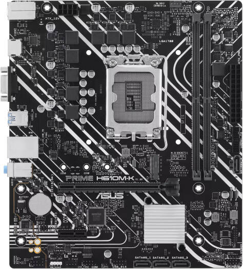 Prime H610M-K Intel® H610 (LGA 1700) micro-ATX motherboard, DDR5, PCIe 4.0, M.2 slot, Realtek 1 Gb Ethernet, HDMI™, VGA, USB 3.2 Gen 1, SATA 6 Gbps, COM header, RGB header