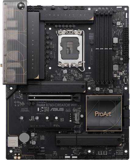 ProArt B760-CREATOR WIFI The ASUS ProArt B760-CREATOR WiFi perfects the art of performance, empowering creativity and maximizing the computing power of the latest 12th&13th Generation Intel® Core™ processors with powerful hardware and software, efficient cooling, and lightning-fast connectivity, including Thunderbolt™ 4, 2.5 Gb and 1 Gb onboard Ethernet.