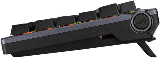 ROG Azoth ROG Azoth gaming custom keyboard with 75 keyboard form factor, gasket mount, three-layer dampening foam and metal top cover, highly customizable with hot-swappable pre-lubed ROG NX mechanical switches, ROG keyboard stabilizers, PBT doubleshot keycaps and lube kit, tri-mode connection with 2.4 GHz SpeedNova technology, OLED display, three-way control knob, three tilt angles, and Mac support Unique gasket mount design: Silicone gasket mount with three layers of dampening foams combine to provide an unrivaled typing experience Tri-mode connection: Use Bluetooth® to connect and switch between three devices at a time, ROG SpeedNova wireless technology provides up to 2,000+ hours of low-latency gameplay in 2.4 GHz RF wireless mode (OLED & RGB off), or use standard wired USB OLED display and intuitive controls: View system