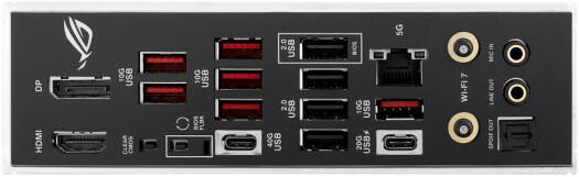 | Back Panel I/O | USB ports (as above), DisplayPort, HDMI, Wi-Fi module, 5Gb Ethernet, gold-plated audio jacks, optical S/PDIF, BIOS FlashBack™, Clear CMOS |