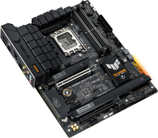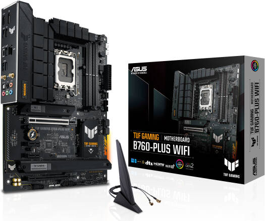 TUF GAMING B760-PLUS WIFI TUF GAMING B760-PLUS WIFI takes all the essential elements of the latest Intel® processors and combines them with game-ready features and proven durability. Engineered with military-grade components, an upgraded power solution and a comprehensive cooling system, this motherboard goes beyond expectations with rock-solid performance for marathon gaming. TUF GAMING motherboards also undergo rigorous endurance testing to ensure that they can handle conditions where others may fail. Aesthetically, this model incorporates an embossed nameplate and geometric design elements to reflect the dependability and stability that defines the TUF GAMING series.
