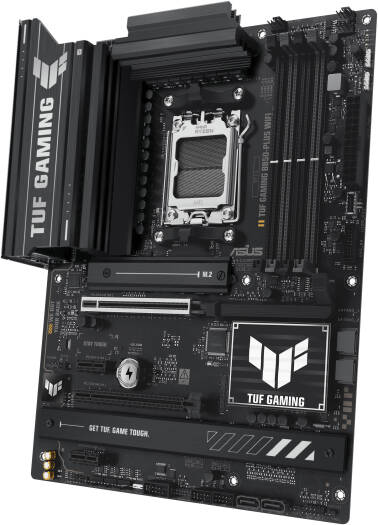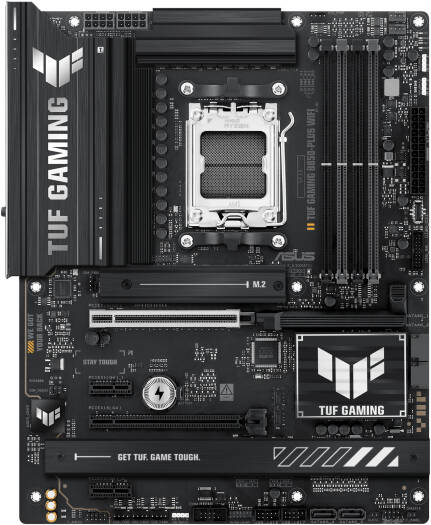 TUF GAMING B850-PLUS WIFI ASUS TUF GAMING B850-PLUS WIFI takes all the essential elements of the latest AMD Ryzen™ processors and combines them with game-ready features and proven durability. Engineered with military-grade components, an upgraded power solution and a comprehensive cooling system, this motherboard goes beyond expectations with rock-solid and stable performance for marathon gaming. TUF GAMING motherboards also undergo rigorous endurance testing to ensure that they can handle conditions where others may fail. This platform delivers the power and connectivity that advanced AI PC applications demand. Specifications Model TUF GAMING B850-PLUS WIFI