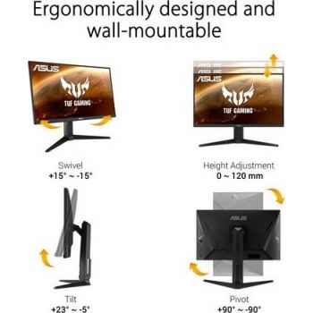TUF Gaming VG328H1B A 31.5-inch, Full HD (1920×1080), curved display with an ultrafast 165Hz refresh rate designed for professional gamers and those seeking immersive gameplay. Those are some serious specs, but not even the most exciting thing the VG328H1B has in store. Its impressive curved display features a 165Hz refresh rate and Adaptive-Sync (FreeSync™ Premium) technology, for extremely fluid gameplay without tearing and stuttering. Specifications Model TUF GAMING VG328H1B Display