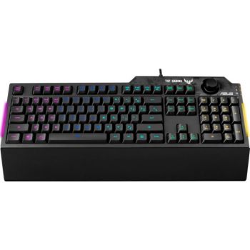ASUS TUF K1 Membrane Gaming Keyboard for PC, Onboard Memory, Dedicated Volume Knob, Aura Sync RGB & Side Lighting, Detachable Wrist Rest, Spill-Resistant, ENG-ARB Layout, Black | 90MP01X0-BKCA00