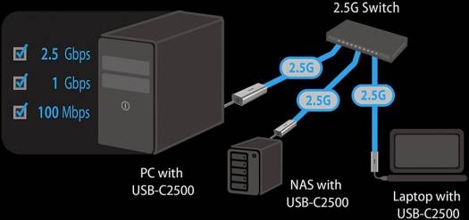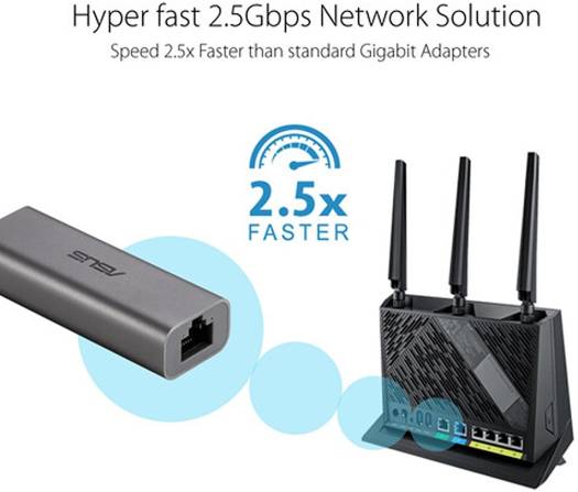 Quickly and easily upgrade your USB 3.0 / USB 3.1 Gen 1 compatible laptop to take advantage of blazing fast wired 2.5 Gigabit Ethernet speeds with the ASUS USB-C2500 USB 3.0 Type-A to 2.5G RJ45 Ethernet Adapter . Plugging this adapter into the USB 3.1 Gen 1 Type-A port of your computer allows you to take full advantage of wired 2.5G Ethernet connections to compatible network routers and switches using a separately purchased Cat 5e cable up to 98 feet long for ultra-smooth video streaming, online gaming, and file transfer experiences. Its durable aluminum housing is designed to quickly dissipate heat for optimal performance while resisting fingerprint smudges and corrosion while the nylon braided cable can withstand everyday wear and tear. The USB-C2500 is made to work with Windows, Mac, and Linux systems without requiring any additional power adapters or software drivers. Hyper Fast 2.5Gbps Networking &nd