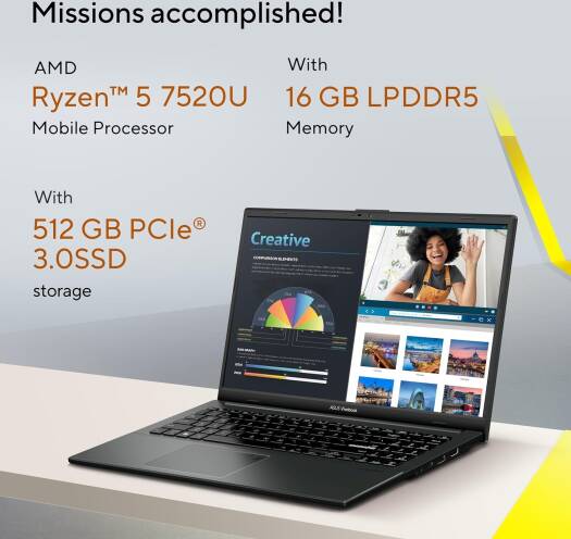 ASUS Vivobook Go 15 OLED E1504FA Slim Laptop, 15.6″ FHD OLED Display, AMD Ryzen R5 7520U, 16GB RAM, 512GB SSD, AMD Radeon, Backlit-Eng-Arb-KB, WIN11 H