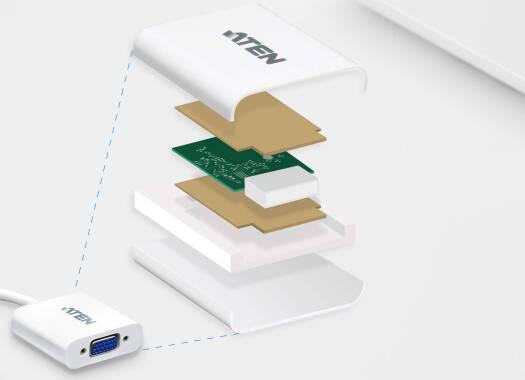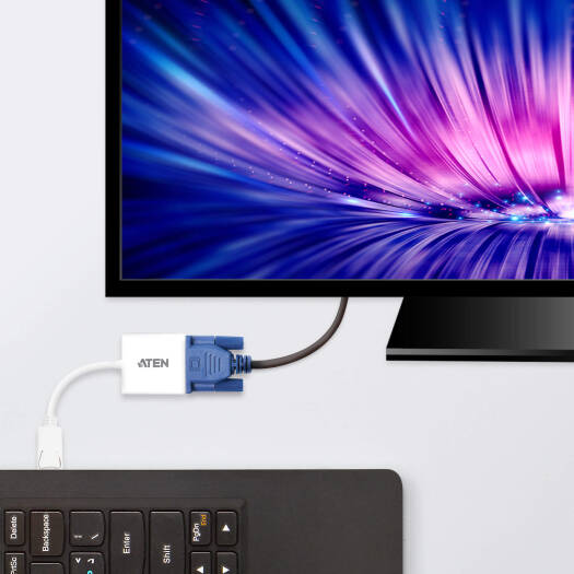 Aten DisplayPort to VGA Adapter, DisplayPort Male (White) & HDB-15 Female (Blue), Up to 4096 x 2160 @ 60Hz Input, White | VC925