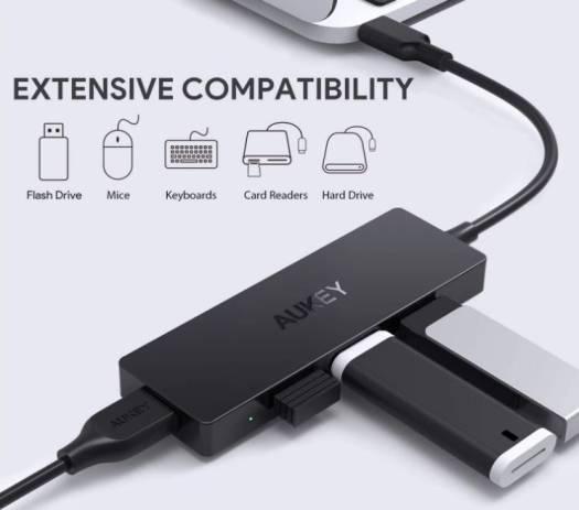 Aukey USB C Hub CB-C64 Ultra Slim USB C Adapter with 4 USB 3.0 Ports USB Type-C Hub for MacBook Pro, XPS, Samsung S9 / S8 and more USB Type-C Devices Black | AKY-HUB-CBC64-BLK