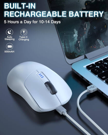 AULA SC580 Gaming Mouse, 3 Polling Rate, Up to 10000 DPI Level, 6 Programmable Buttons, Anti-Slip Stickers, Built-in 500mAh Rechargeable Battery, Tri-Mode Connection, White | SC580-WHT