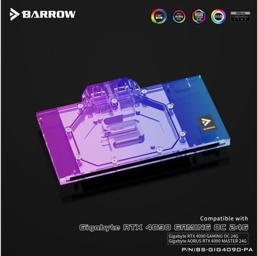 Barrow LRC2.0 Full Coverage GPU Water Block, For Gigabyte Aorus 4090 Aurora, Temperature Resistant and High-Tranparency Imported Acrylic Raw Materials