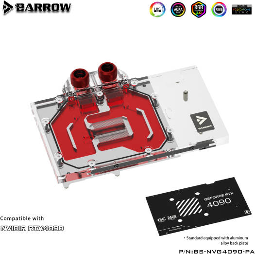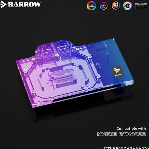 Barrow LRC2.0 Full Coverage GPU Water Block, For ZOTAC 4090 Aurora, Temperature Resistant and High-Tranparency Imported Acrylic Raw Materials, Red Copper Acrylic Material | BS-AIC4090-PA